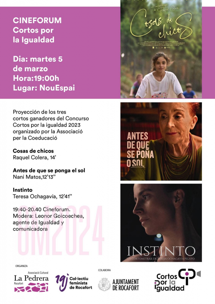 Proyección de los tres cortos ganadores del Concurso Cortos por la igualdad 2023 organizado por la Associació per la Coeducació