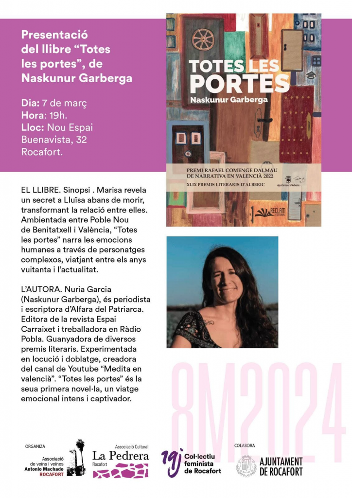 Marisa revela un secret a Lluïsa abans de morir, transformant la relació entre elles. Ambientada entre Poble Nou de Benitatxell i València, “Totes les portes” narra les emocions humanes a través de personatges complexos, viatjant entre els anys vuitanta i l’actualitat.