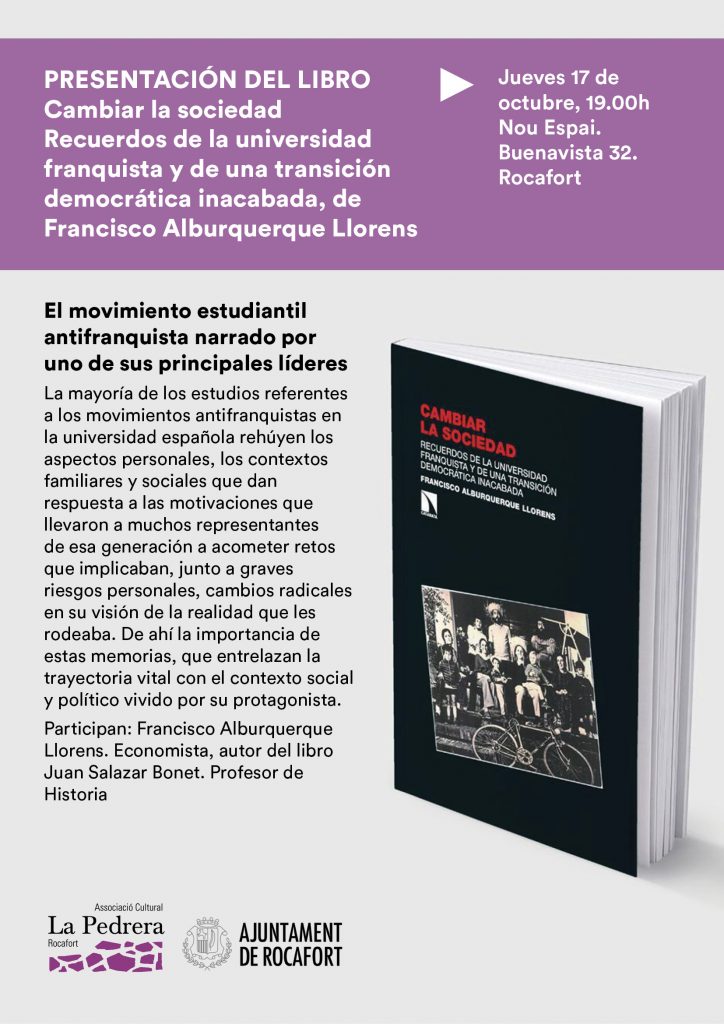 Presentación del libro: Cambiar la sociedad . Recuerdos de la universidad franquista y de una transición democrática inacabada, de Francisco Alburquerque Llorens.-