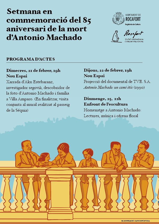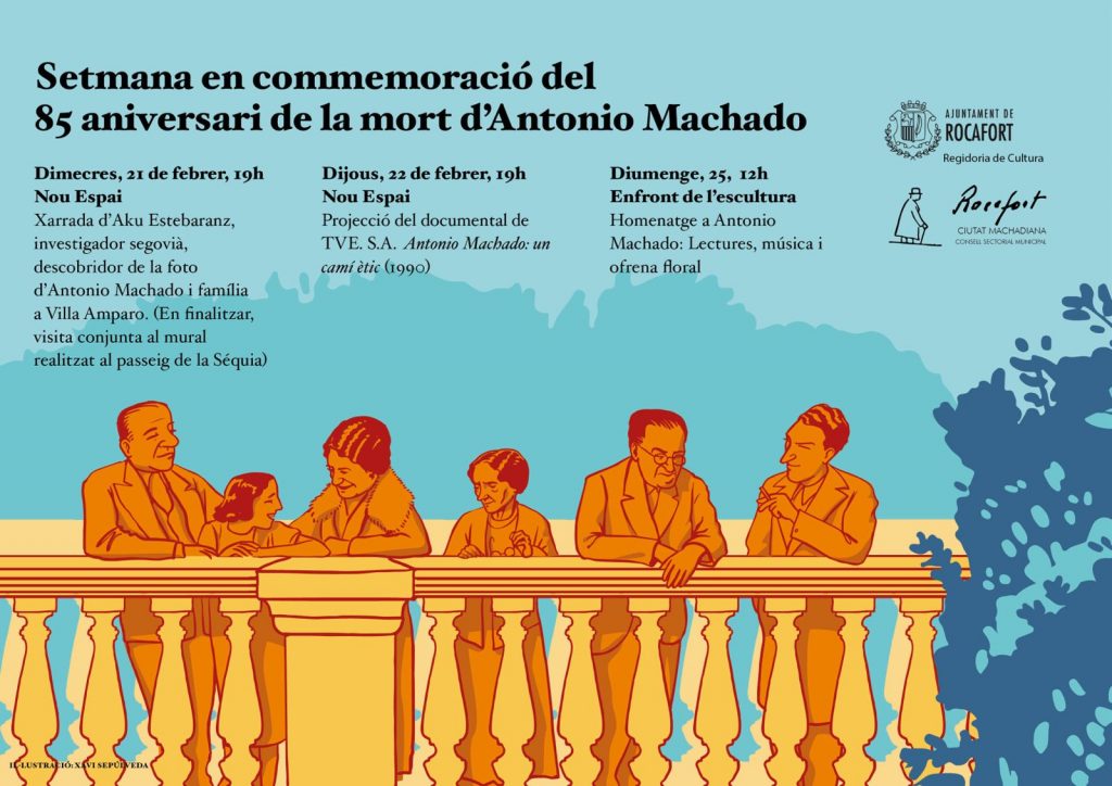 Entre les activitats realitzades amb motiu de la commemoració del 85è aniversari de la mort d’Antonio Machado, organitzades pel Consell Sectorial Antonio Machado de l’Ajuntament de Rocafort, destaca la realització d’un mural confeccionat prenent com a referència la imatge descoberta per l’investigador Aku Estebaranz. L’autor de l’adaptació, l’il·lustrador Xavi Sepúlveda, va realitzar aquesta proposta, en la qual, segons les seues pròpies paraules, «vaig intentar ser fidel a la fotografia, però reflectint, sobretot en la gamma cromàtica, els colors i la llum que em inspiren l’horta de Rocafort, que és la que veig tots els dies». La realització del mural va ser coordinada tècnicament per la il·lustradora i muralista rocafortana Aneta Tarmokas, amb la participació activa del propi Xavi Sepúlveda i voluntàries i voluntaris de l’Associació Cultural La Pedrera de Rocafort, membre del Consell Sectorial. A més a més, es va restaurar el mural realitzat en l’any 2009.